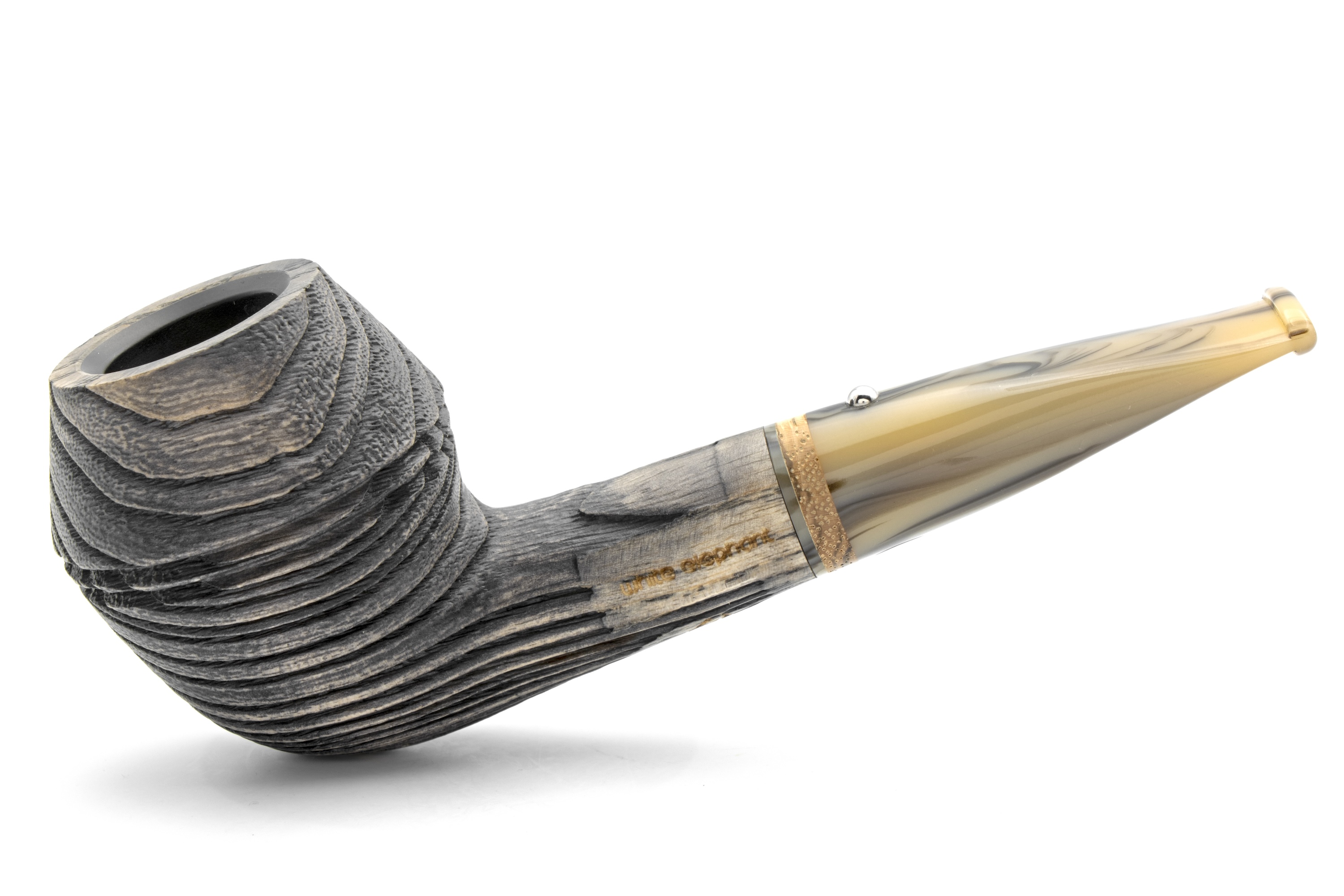 The Meerschaum used to be imported from Tansania (now only Meerschaum of the highest quality from Eskisehir, Turkey is used), so the name ‘White Elephant’ was found very fast.